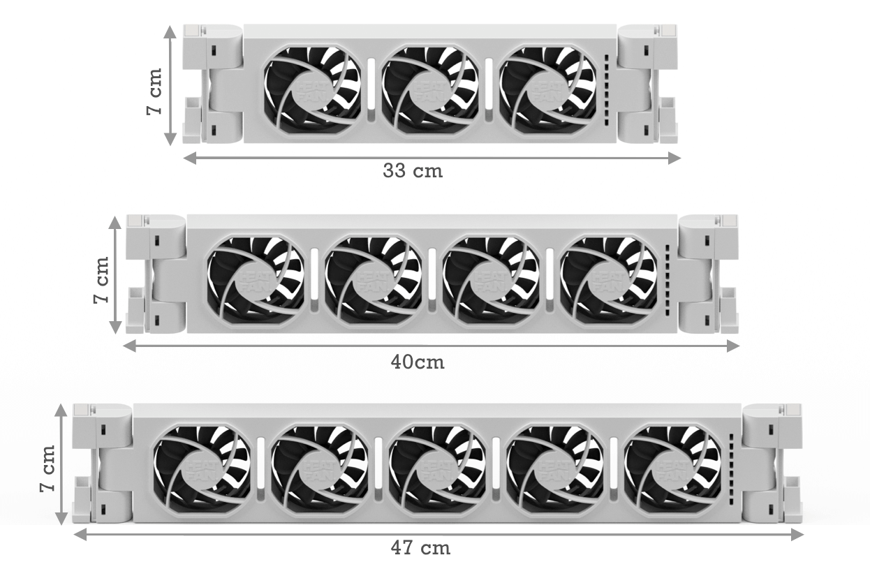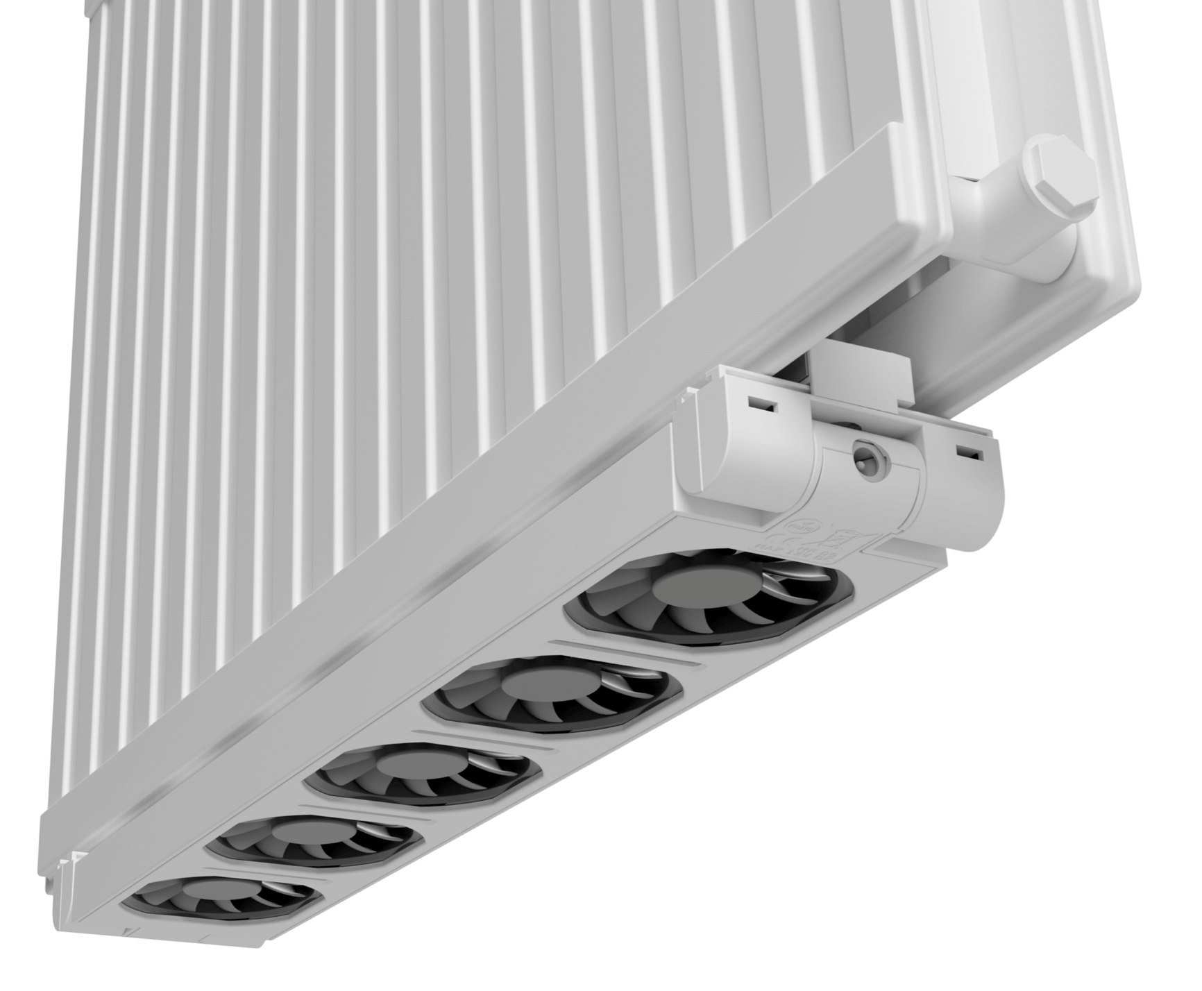 Hierdoor zitten de Heatfans niet in het zicht en kan de smart sensor/controller goed schakelen op de temperaturen bovenin de radiator.